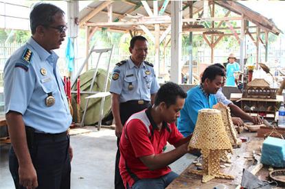 Bekas batang pohon singkong yang selama ini dibuang oleh warga setelah dicabut dan dipanen karena dianggap tidak bermanfaat, justru disulap sedemikian rupa menjadi souvenir berbentuk lampion atau tempat lampu duduk di meja rumah. Tak hanya itu saja, warga binaan di lapas ini juga mampu mengolah aneka kerajinan tangan seperti kain tapis, fast bunga dan sovenir mainan.